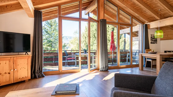 Die Ferienwohnung Gipfel ist ähnlich geschnitten wie die darunter liegende Wohnung und bietet auf 65m² Raum Platz für bis zu 4 Personen.